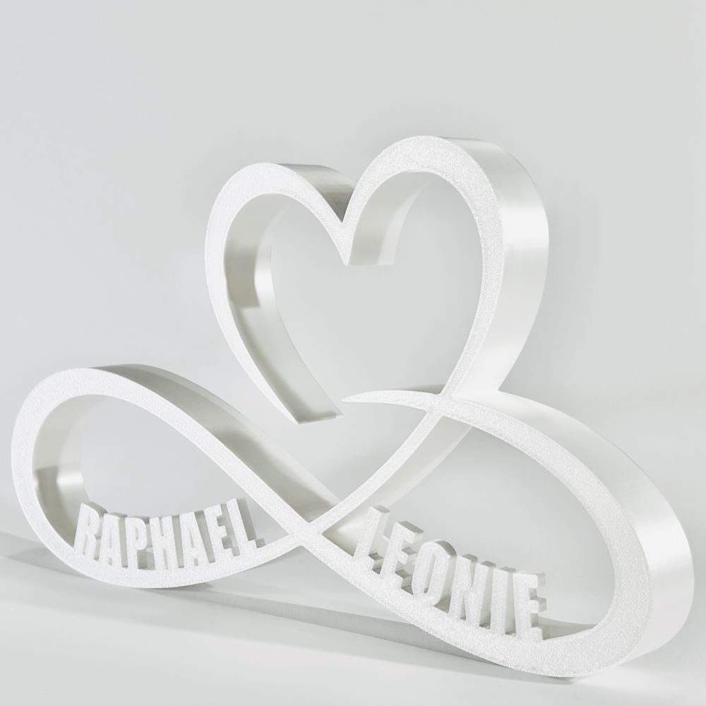 Dieses wunderschön gestaltete Unendlichkeitszeichen aus hochwertigem Kunststoff ist das perfekte Geschenk für Paare. Ob zur Hochzeit, zum Jahrestag oder als romantische Überraschung – mit der Möglichkeit, zwei Namen und auf Wunsch ein besonderes Datum hinzuzufügen, wird dieses Symbol zu einem einzigartigen Andenken an eure Liebe.