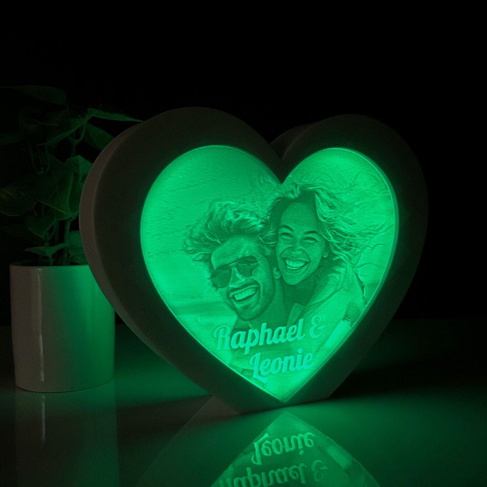 Personalisiere die Lampe mit einem Foto und auf Wunsch einem kurzen Text.